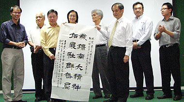 筹委会主席在各协办单位代表的陪同下赠送对联“发扬南大精神,拓展社群格局”予黄玉武博士,以示感谢之意。