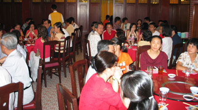 由砂拉越南大校友会古晋分会主办的丙戌年新春联欢会,于2006年2月5日晚上在古晋一家酒楼举行,共有100多位南大校友及其家眷参与其盛。其中有3位分别来自纽西兰、香港和诗巫三地的南大校友亦趁新年回晋省亲之便,特来与久别的旧日同窗相聚。席开12桌,佳肴美酒,谈笑风生,相见甚欢。