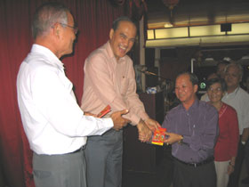 最后,许氏特为会员陈应桐校友赠送新著“沙贝的回响”给出席校友作简单介绍,对陈校友的文学成就,赞赏不己。