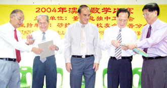 砂拉越南洋大学校友会古晋分会会长许兴梅致词时表示,希望通过此项比赛,激发同学们学习数学的兴趣及协助我国政府达致培养大量数理人才,进而协助推动国家经济建设的目标迈进。 他说,此项旨在强调数学这门科学重要性及国际性的数学比赛,共分为初级、中级及高级三组。每组分华文与英文两部分。 州助理文化与城市化部长拿督沈庆辉出席此项“2004年澳洲数学比赛”主持揭封仪式致词时指出,民族教育一路来都是在狭缝中成长,都是靠着自力更生的原则来开创一个美好田地,但是独中的教育也不是孤荒自长,它在迎合整个国际文化教育发展趋势之下,也能够走出国家领域,而走向国际。 有鉴于此,拿督沈认为参与此项由董教总独中工委会主办,砂拉越南洋大学校友会古晋分会所协办的澳洲数学比赛,将是作为提升我们受教育者,或是对于热爱民族教育者对华文教育的一种信心。 他说,这不仅仅在语文方面能够迎合整个世界国际形势要求,也即是说华文普遍在国际社会方面越来越受到重视,特别是中国近期在整个亚洲,包括世界国际舞台方面,扮演着举足轻重的角色之后,华文在国际上的地位日益提高。 拿督沈庆辉表示,能主办此项国际性比赛,更引证了南大校友会一路对于文化教育方面的推动与热诚。